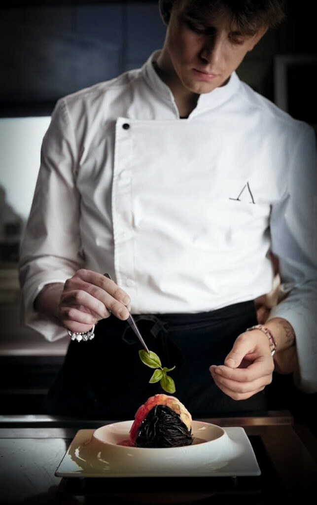 Nel 2018 entra nella cucina gourmet del Castello di Ivrea al fianco dell’Executive Chef Massimo Masciaga, dove segue un percorso appassionato fatto di duri sacrifici che lo formano caratterialmente.
